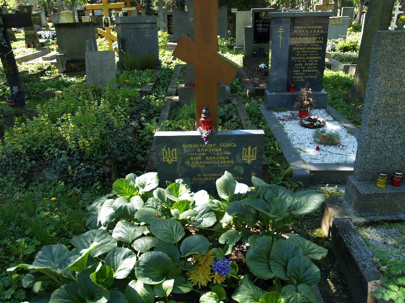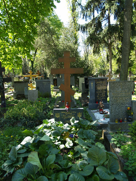 Мені потрібно перейти на іншу частину кладовища, що розташована через дорогу від вулиці Желівскєго. Довго блукаю і зрештою повертаюсь до головної брами (звідки починав свої пошуки), питаю допомоги в перехожих і з другої спроби потрапляю до потрібного мені сектору. При вході на цвинтар спостерігаю цілий ярмарок: безліч продавців пропонують різного роду свічки, лампади, пасхальні яйця та якісь незрозумілі для мене різнокольорові стрічки. Купую дві лампади ціною по 9 крон кожна та заходжу на цвинтар. Крокую центральною алеєю, вдалині бачу православний храм. Поруч зі мною йде група студентів (чехів), викладач їм читає лекцію, проте цікаво далеко не всім. Зупиняюсь біля входу до церкви, однак вирішую зайти пізніше позаяк студенти обступили споруду з усіх боків і до дверей не пробратися. Дивлюсь на план-схему цвинтаря, який мені роздрукували в адміністрації, та визначаю місцезнаходження потрібного мені сектору. Спершу починаю прогулюватись між рядами могил, однак невдовзі вирішую повернутися на початок. Вертаюсь і розпочинаю систематично знимкувати кожне поховання, переходячи від могили до могили. Найбільш «багатим» на українців виявився 18 сектор. Однак і тут поруч з вояками Армії УНР, українськими поетами, письменниками та професорами лежать білоемігранти. «Як воно – бути похованим поруч із запеклими ворогами?», – міркую я собі. Загалом співвідношення українських могил до російських приблизно 1:4. Могили є різні – одні доглянуті, інші явно забуті. До речі, у Чехії, як і в багатьох інших європейських країнах, місце поховання слід оплачувати. За несплату могилу ліквідовують і на її місці ховають іншу особу. Оплата одного місця поховання здійснюється терміном на 10 років і на Ольшанському цвинтарі коштує від 7 500 до 8 000 чеських крон. Чимало могил видатних українців в Чехії, і не лише в цій країні, були втрачені через несплату. Однак це вже інша історія…